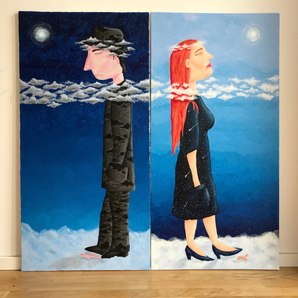 2019. Acryl auf Leinwand (Keilrahmen). 2 Bilder, nur zusammen erhältlich. 120×120 cm. Nicht gerahmt.